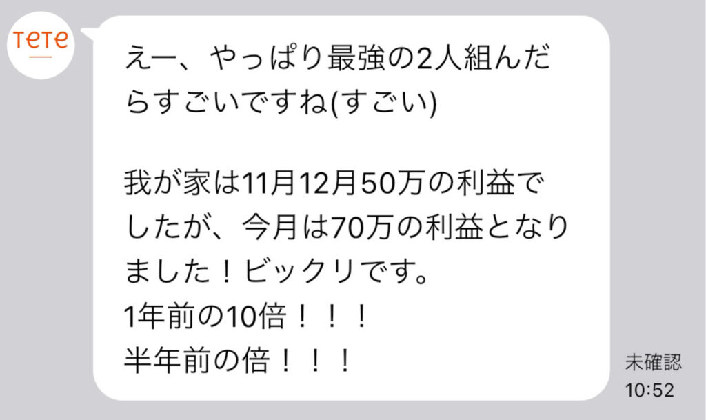 10か月後には月利70万円いったようです